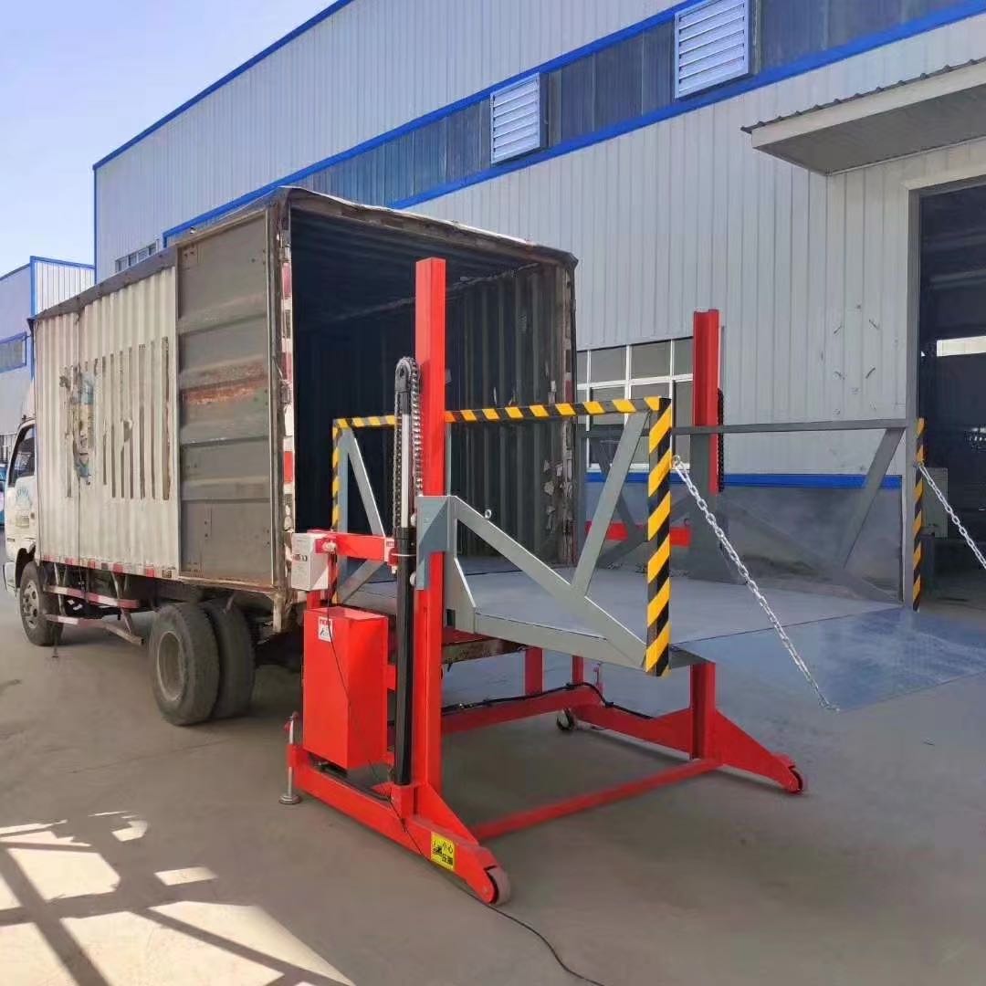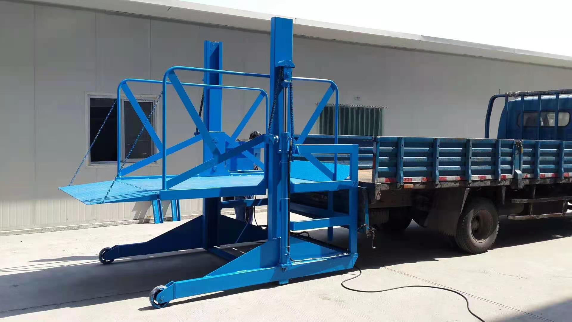 移動(dòng)式裝卸貨平臺(tái)用于配合貨車裝卸貨物。設(shè)備上的翻板對(duì)接貨車尾部,可以提升2噸的貨物,底部輪子移動(dòng)行走, 屬于流動(dòng)式的登車橋,大大利用工廠實(shí)際使用空間,提高裝卸貨的效率,減少人工成本。