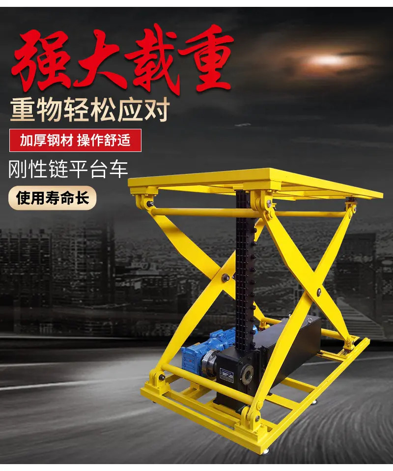 5.承載和行程:剛性鏈升降平臺具有載重量大,行程高,基坑淺的特點